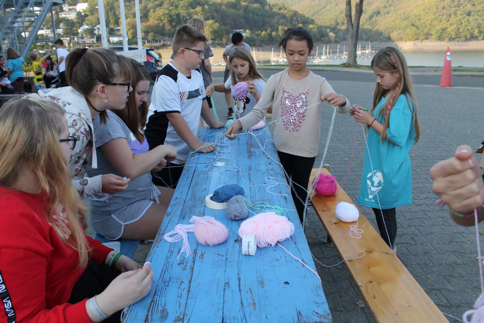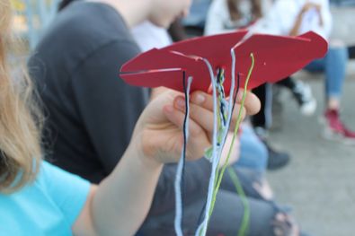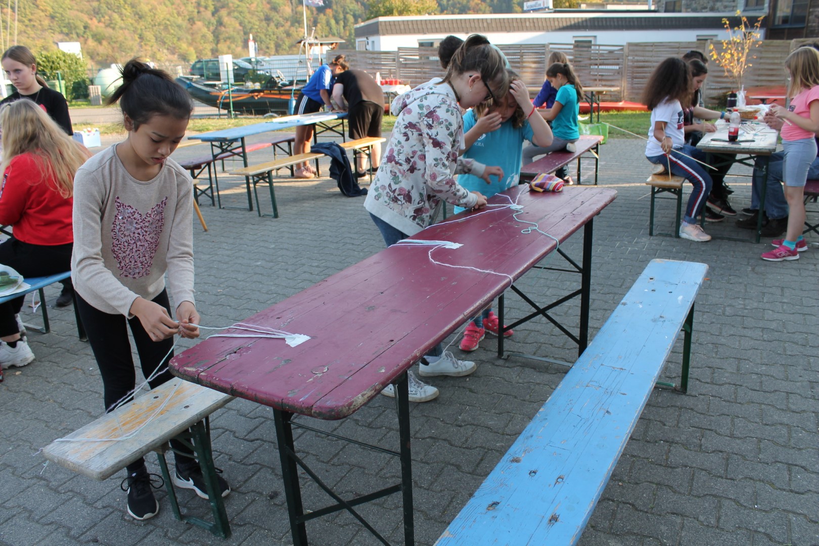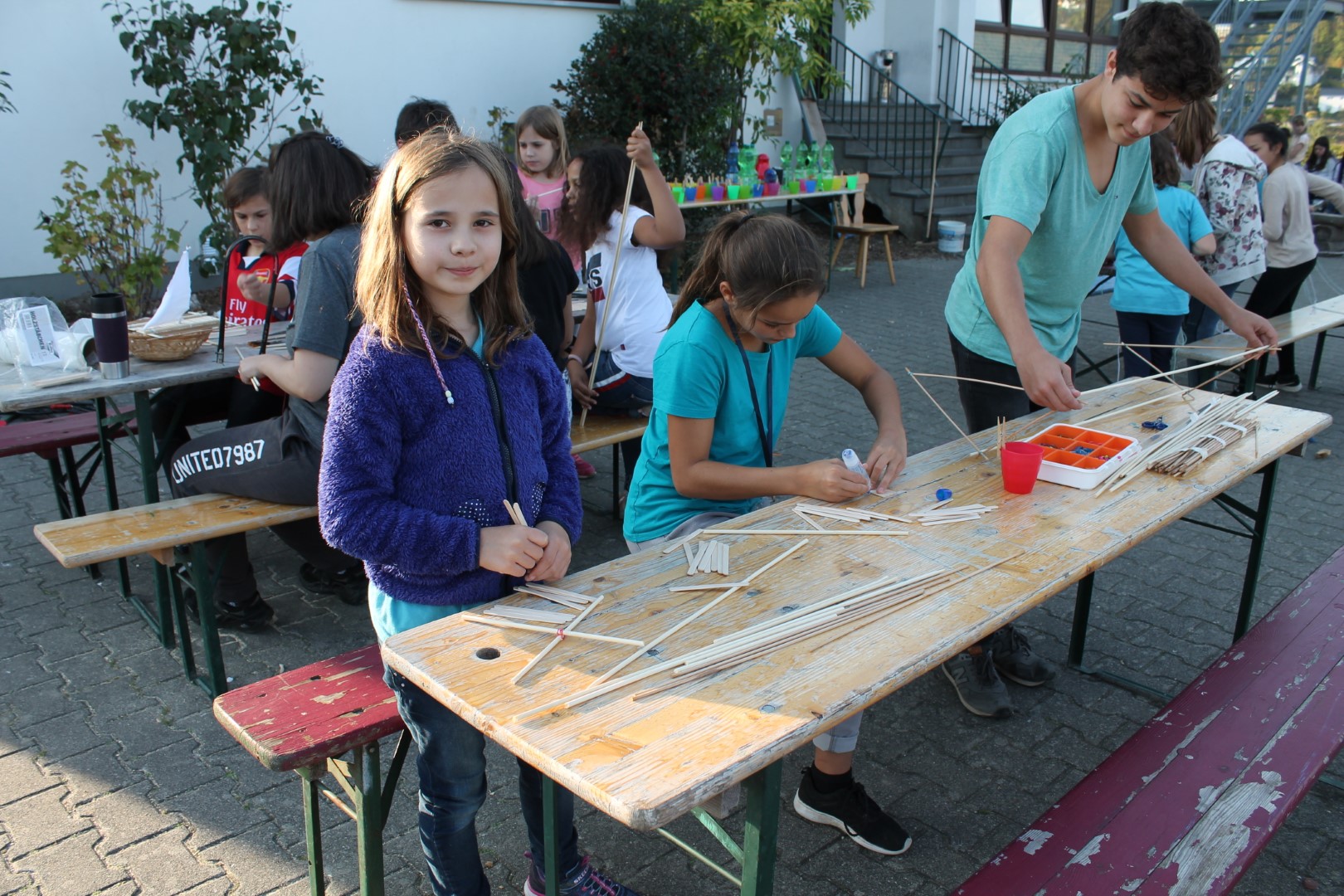 Nachmittags wurden verschiedene Workshops angeboten: Freundschaftsbänder basteln, Kubb spielen, in den Wald gehen und Schiffe bauen. Nach dem spannenden Nachmittagsprogramm haben wir den Abend am Lagerfeuer ausklingen lassen und konnten Marshmallows darüber erwärmen und Lieder singen.